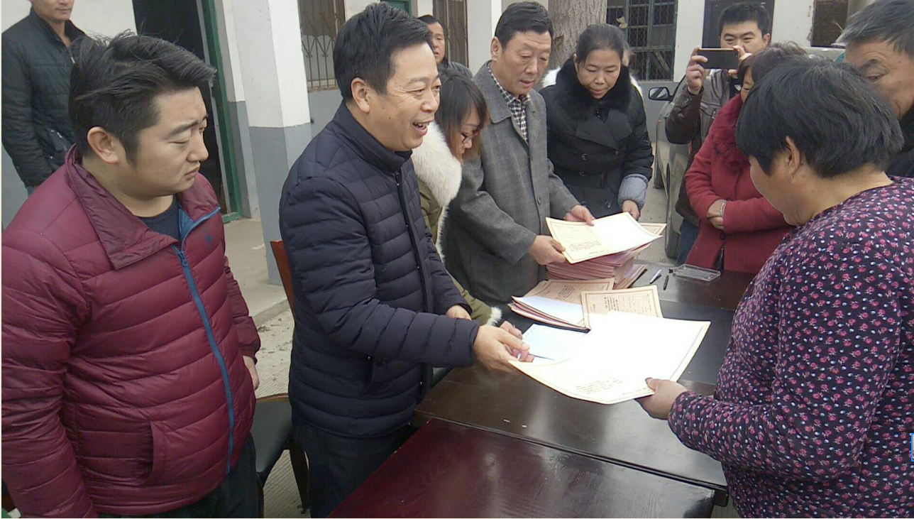 农村集体土地使用权登记发证工作已进入最后攻坚战,华龙区国土局与岳村镇政府高度重视,于20171129日上午,英国bet365官网王培臣局长、岳村镇政府王骁副书记,不畏严寒,驱车前往岳村镇大猛村委会,现场为岳村镇大猛村老百姓发放集体土地使用证书,并解答老百姓有关农村宅基地各种问题。通过村长的广播带动,大猛村民积极响应号召,集聚村委会大院,热切盼望属于自己的“身份证”,村委会成员组织村民们有序领证,王局长把集体土地使用证发放至村民手中,共为大猛村发放宅基地证书321本,整个发证过程井然有序,领到证书的百姓喜悦之情溢于言表。