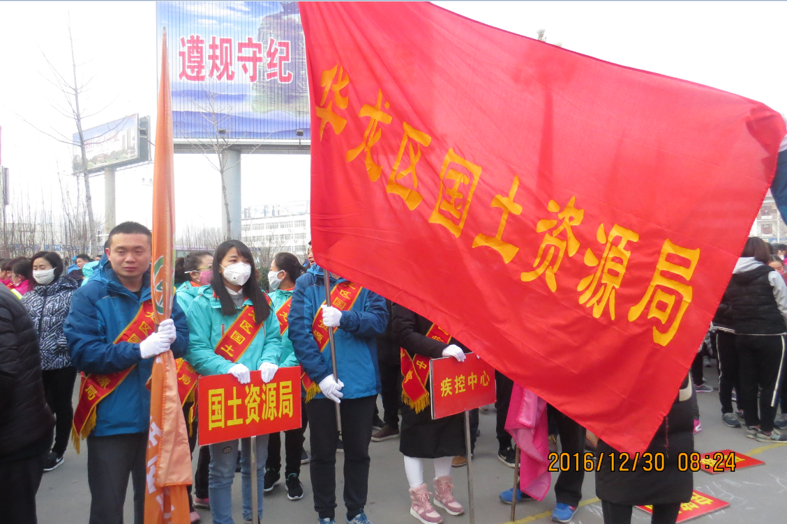 12月30号华龙区区委、区政府组织区直各单位举办了2016年华龙区迎元旦长跑健身活动。我局全体干部职工倡导全民参与弘扬体育健身精神,活动中全体职工精神焕发、步伐统一、口号洪亮充分展现了国土人的精神面貌。