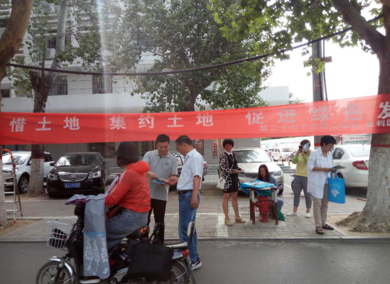 动期间,局办公室联合各业务股室、孟轲国土资源所、胜利国土资源所分别深入街道、社区、乡村开展土地日宣传,让“土地日”活动深入人心据统计,在街道悬挂横幅20余条,设立咨询台5处,累计发放相关土地政策资料5000余份,环保购物袋300余个,接受法规政策咨询群众达600余人
