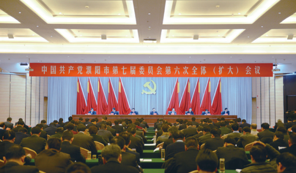 1月3日,中国共产党濮阳市第七届委员会第六次全体(扩大)会议召开,深入贯彻党的十九大精神和省委十届五次全会精神。全会听取和审议通过了何雄受市委常委会委托所作的《市委常委会2017年工作报告》,审议通过了《市委常委会2017年抓党建工作情况专题报告》,表决通过了《中国共产党濮阳市第七届委员会第六次全体会议决议》。